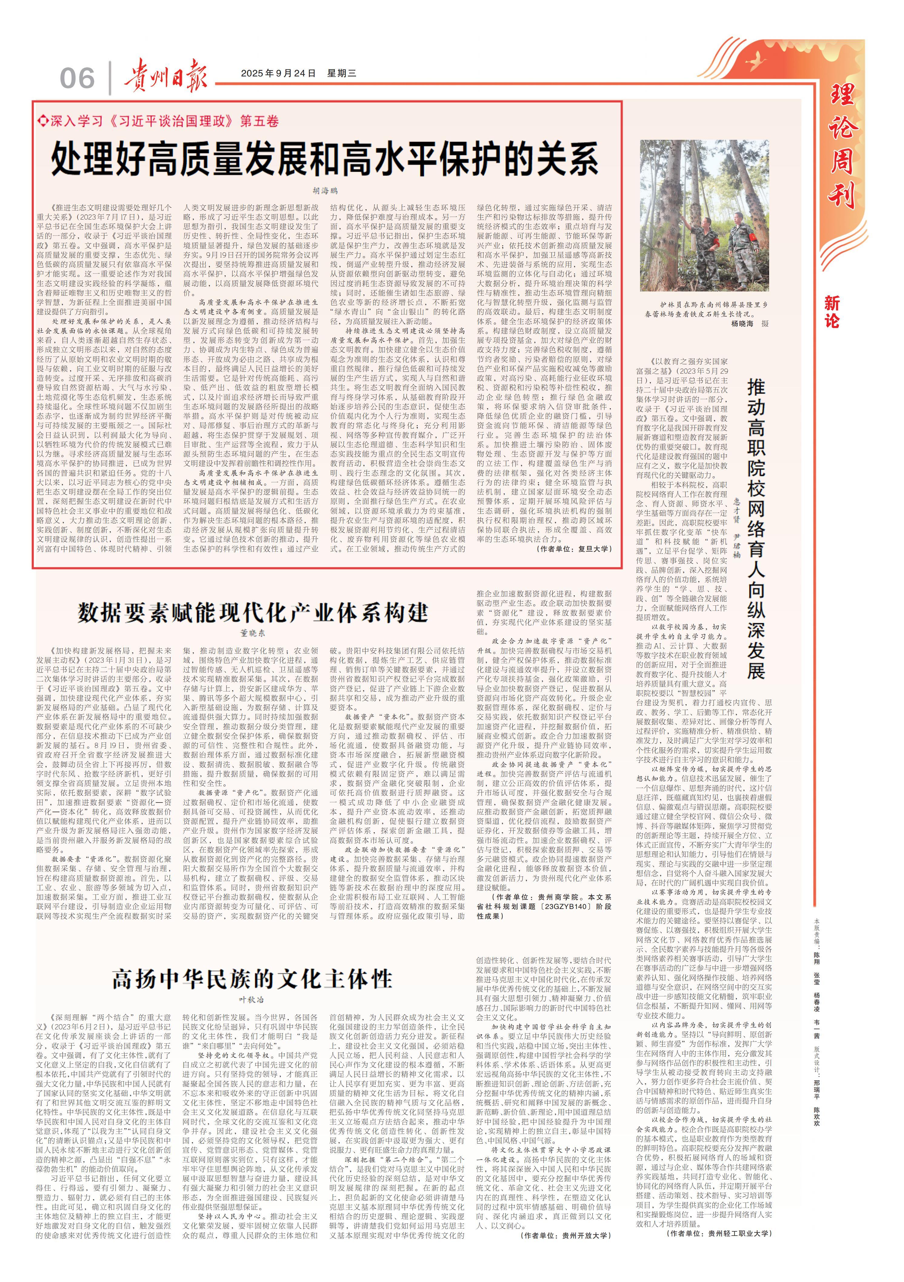(作者单位:复旦大学。节选自《贵州日报》9月24日06版“深入学习《习近平谈治国理政》第五卷”栏目《处理好高质量发展和高水平保护的关系》)